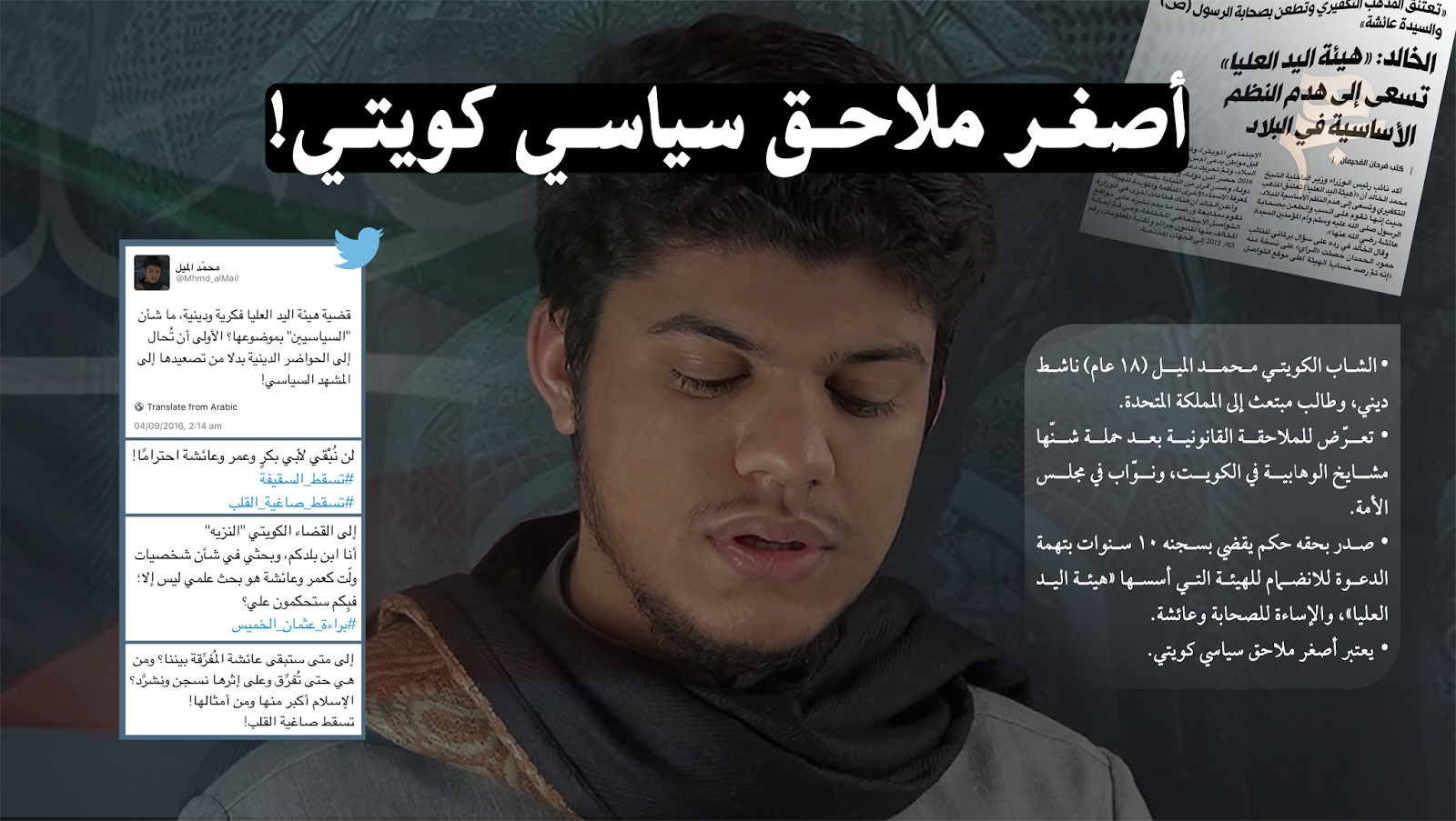 ويعد محمد الميل أصغر ناشط كويتي يتعرض لملاحقة سياسية بهذا الحجم، في خطوة أثارت ردود فعل واسعة داخل الكويت وخارجها.