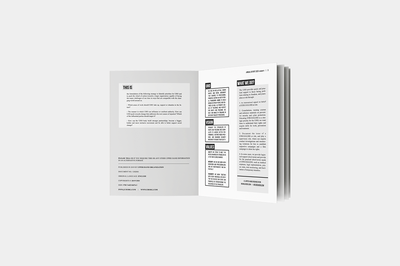 إرضاءً للمستثمرين والجهات المانحة من جهة، وكنوع من الشفافية والأرشفة من جهة أخرى؛ أطلقت هيئة اليد العليا تقريرها السنوي لعام 2019، والذي استعرضت فيه أهم إنجازاتها، وقيَّمت فيه أداءها خلال العام، كما صاغت الاستراتيجية التالية للسنة الجديدة 2020، وحددَّت الأوليات، والطريقة التي ينبغي أن تسير عليها للتأثير أو مواجهة السلطة، الآلية التي ستُمكَّنها من تبنَّي شراكات أقوى، لدفع عجلة العمل نحو منظمة أكبر قادرة على مواجهة التحديات الرئيسية، ولتصبح هيئة اليد العليا حركة أكبر وأكثر جرأة وشمولية، وقادرة على دعم التغيير الاجتماعي بحسب ما جاء في التقرير.