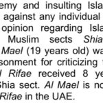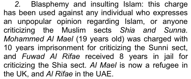 أشارت المطر ضمن ورقتها إلى قضية الصحافي الكويتي محمد الميل، مؤسس هيئة اليد العليا، المحكوم 17 سنة غيابيًا بسبب آرائه السياسية والدينية، ولجوئه إلى المملكة المتحدة هربًا من قمع السلطات لحريته وممارسته للصحافة الحرّة والمستقلة: “محمد الميل (19 سنة) محكوم بالسجن 10 سنوات لانتقاده الطائفة السنية… الميل الآن لاجئ سياسي في المملكة المتحدة”.