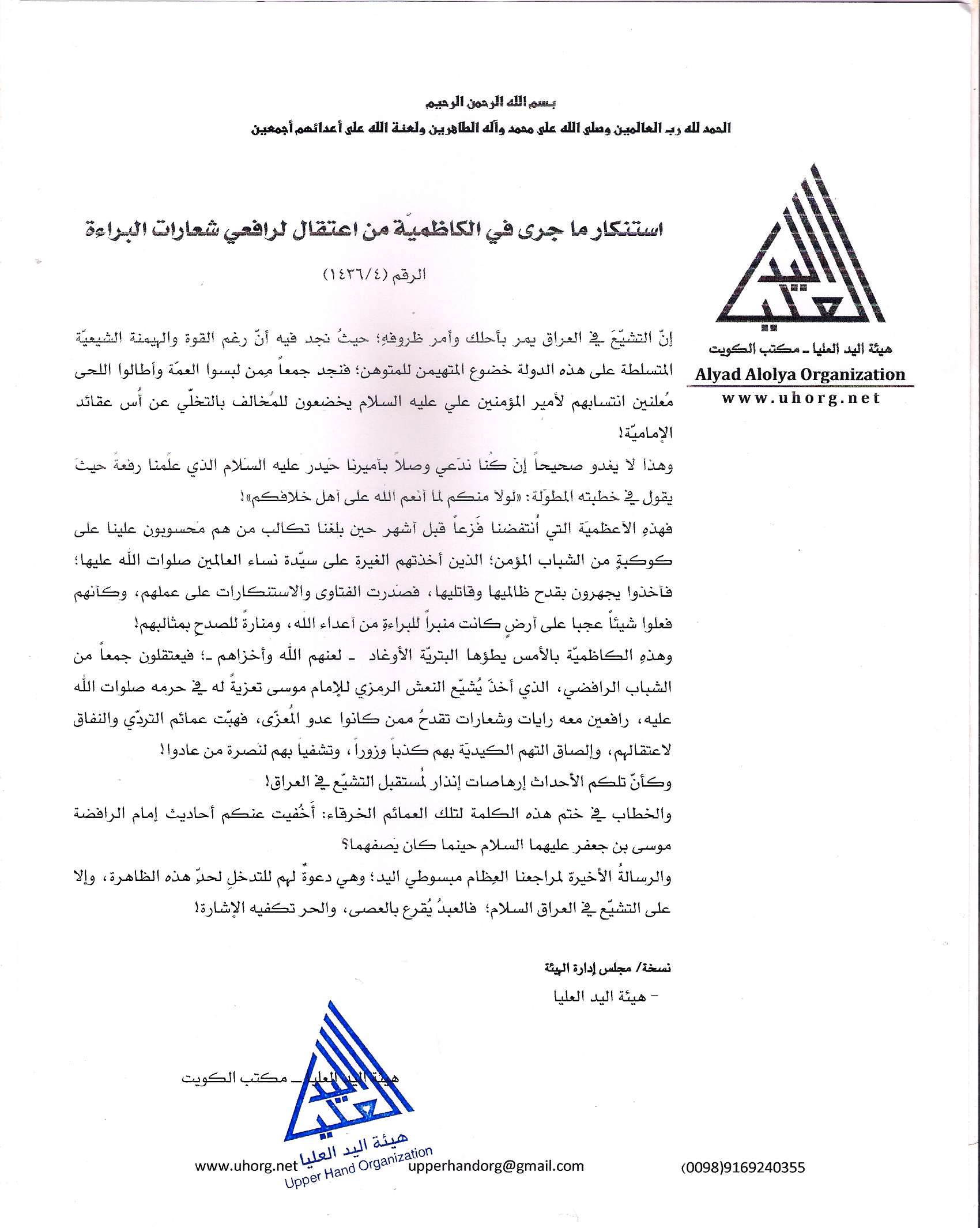 صدر عن هيئة اليد العليا البيان التالي (1436/4):