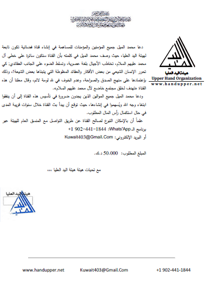 وفي الأيام القادمة، ستنطلق حملة عالمية لجمع التبرعات للبدء بالمشروع؛ لذا فعلى المؤمنين الراغبين أن يكونوا جزءًا من هذا الإنجاز الاستراتيجي الضخم أن يَهبُّوا لتمويله.
