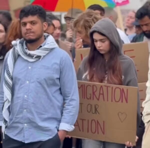 انضمت هيئة اليد العليا إلى المتظاهرين المناهضين للعنصرية ضد اليمين المتطرف المعادي للإسلام. جاءت هذه المظاهرات ردًا على موجة العنف التي ارتكبتها جماعة تومي روبنسون في إنجلترا وأيرلندا الشمالية، اعتمادًا على معلومات مضللة منتشرة على الإنترنت بعد الحادث المأساوي لطعن ثلاث فتيات في ساوثبورت، وقد اتخذت الجماعة تلك المعلومات ذريعة لشن هجمات على المساجد واستهداف المسلمين.