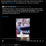 كما اجتهدت منظمة صهيونية أخرى تدعى أوقفوا الكراهية في المملكة المتحدة (Stop Hate UK) جهود الضغط على شرطة العاصمة لاعتقال الميل، منددةً بما وصفته بـ “تمجيد الإرهاب في وضح النهار”، واصفةً الموقف بأنه “مشهد لا يصدق”، وزعمت أنه ردد شعارات استفزازية، وقالت: “لا يمكن التسامح مع الإرهاب الممجد في وضح النهار”.