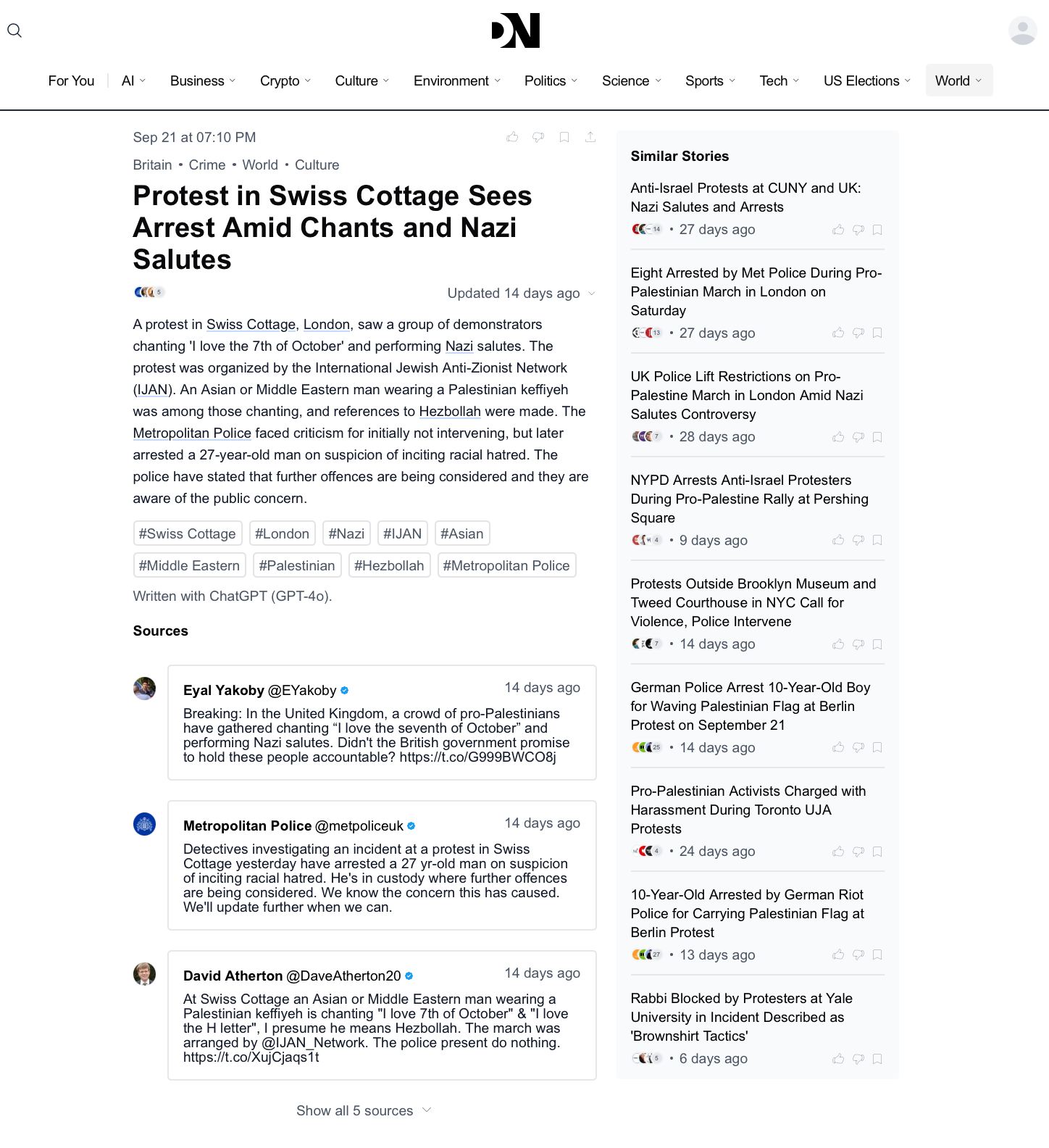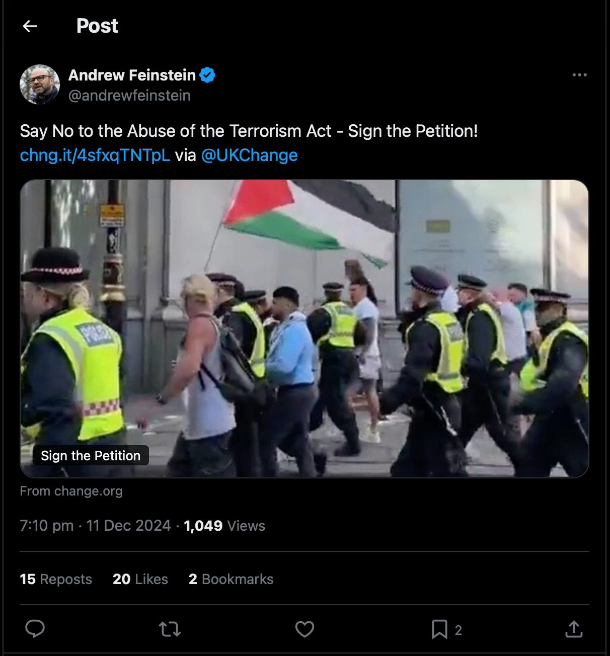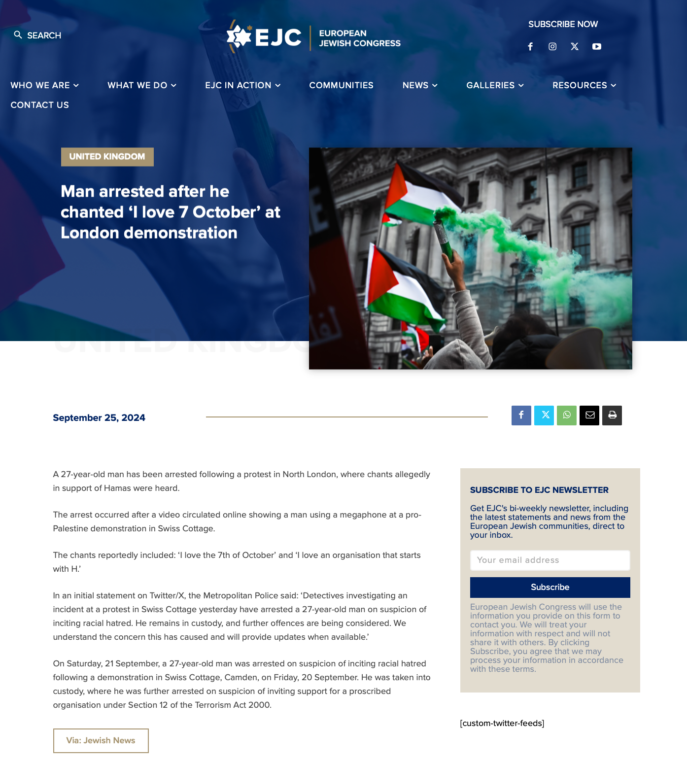 يأتي هذا الاعتقال بعد مشاركته البارزة في عدة احتجاجات في مختلف أنحاء البلاد، وخاصة الاحتجاج الذي نظم في سويس كوتج (Swiss Cottage) في 20 سبتمبر، والذي يجتمع فيه المئات كل أسبوع يوم الجمعة للمطالبة بطرد السفير الإسرائيلي من بريطانيا.