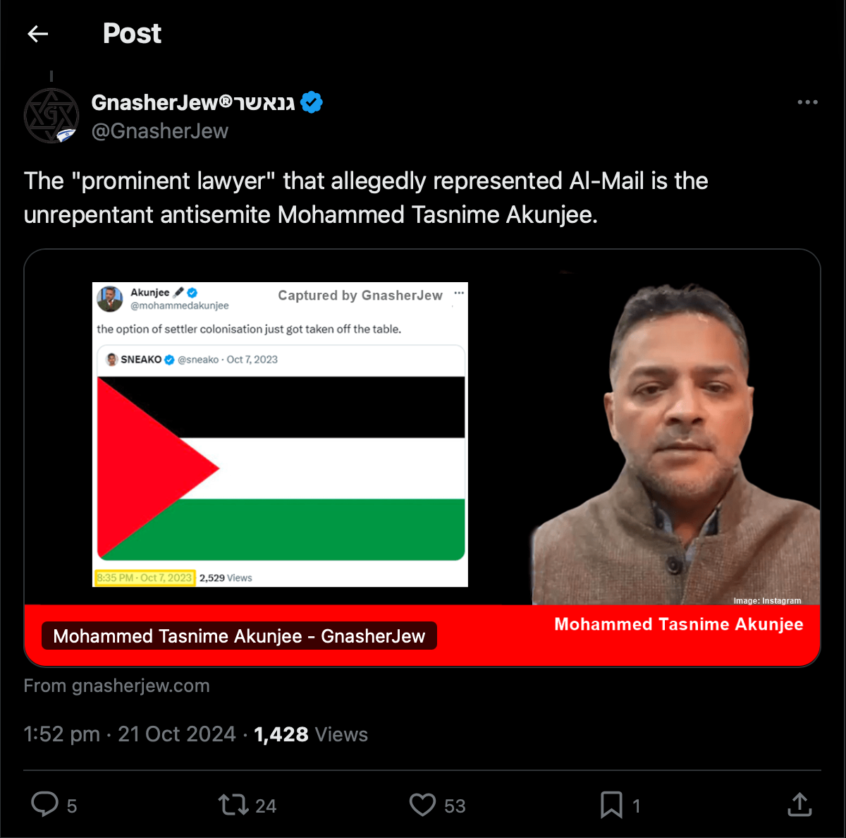 تحديث (23/5/2025): نشرت صحيفة “ذا تليغراف” تقريرًا مفصلًا يقارن بين قرار النيابة العامة بإغلاق قضية محمد الميل بعد تحقيقات الشرطة التي قدمت أدلة ضده مرتين دون توجيه تهم، مقابل توجيه تهمة لناشط يهودي بسبب حمله لافتة ساخرة ضد الأمين العام السابق لحزب الله. التقرير جاء في محاولة واضحة للتحريض على الميل واتهام النيابة بازدواج المعايير. هذا ما أثار موجة تحريض واسعة من الصهاينة وأعوانهم على مواقع التواصل الاجتماعي، في ظل حملة صحفية بائسة تكشف تسييس ملف قانوني حساس. (2).