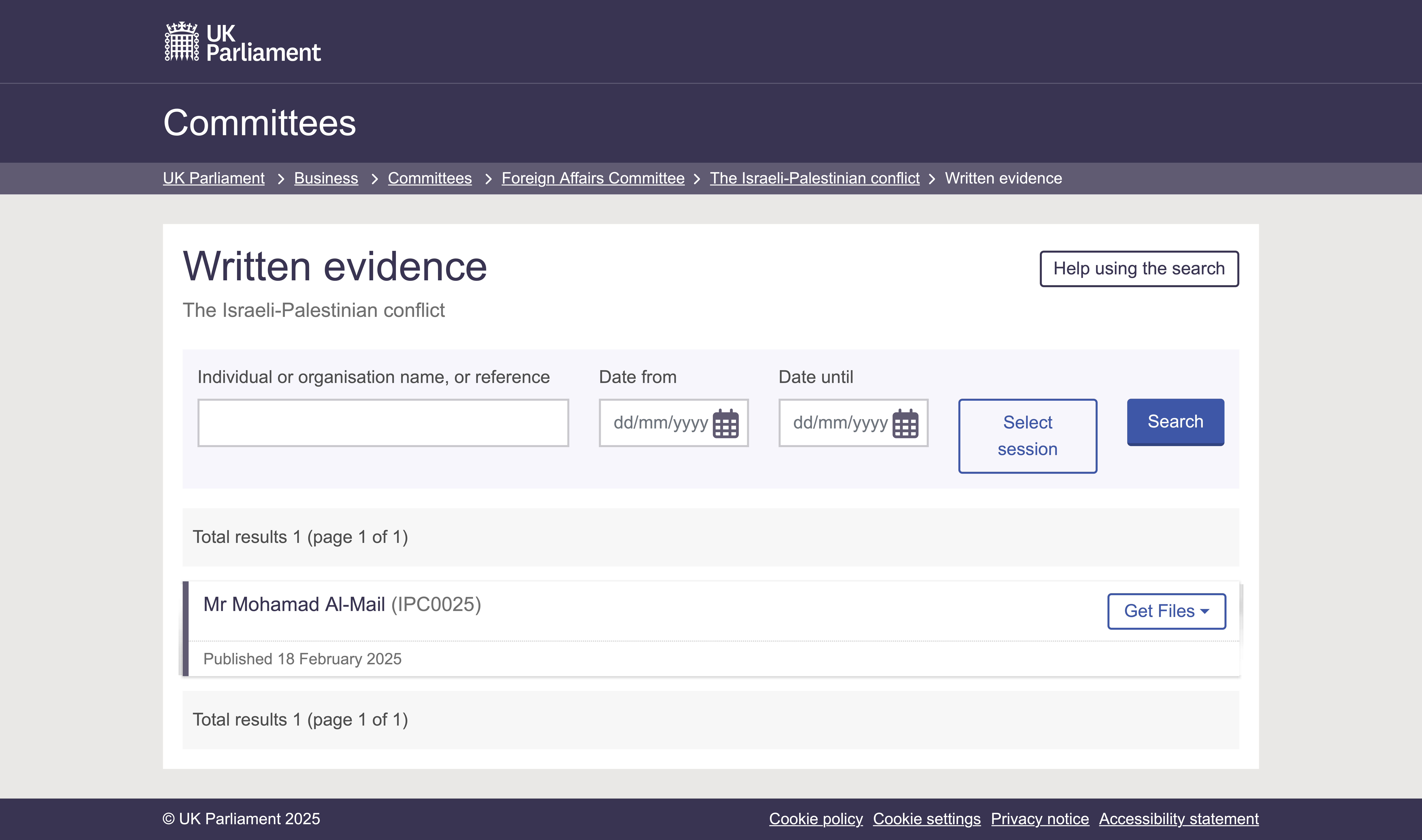 أطلقت لجنة الشؤون الخارجية في مجلس العموم البريطاني تحقيقًا في الصراع الإسرائيلي الفلسطيني، حيث استقبلت العديد من الطلبات من خبراء ومستشارين، من بينهم محمد الميل، المستشار المستقل والخبير في الحركات الإسلامية؛ وقد قدم الميل توصياته التي تم قبولها ونشرها اليوم على موقع البرلمان البريطاني، بتاريخ 18 فبراير 2025.