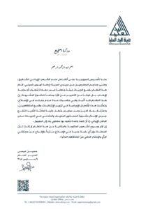 سلَّم العضو المكلَّف من المدير العام لهيئة اليد العليا مذكرة احتجاج إلى السفارة الإيرانية في العاصمة البريطانية لندن معربًا عن استيائه بشأن تدني مستوى الحريات في الجمهورية الإيرانية، موجِّها خطابه إلى ما تبقى من العقول في النظام الإيراني، ومقترحًا الإفراج عن معتقلي الرأي والاعتذار كخطوة أولى وجدية في الإصلاح السياسي والإجتماعي.